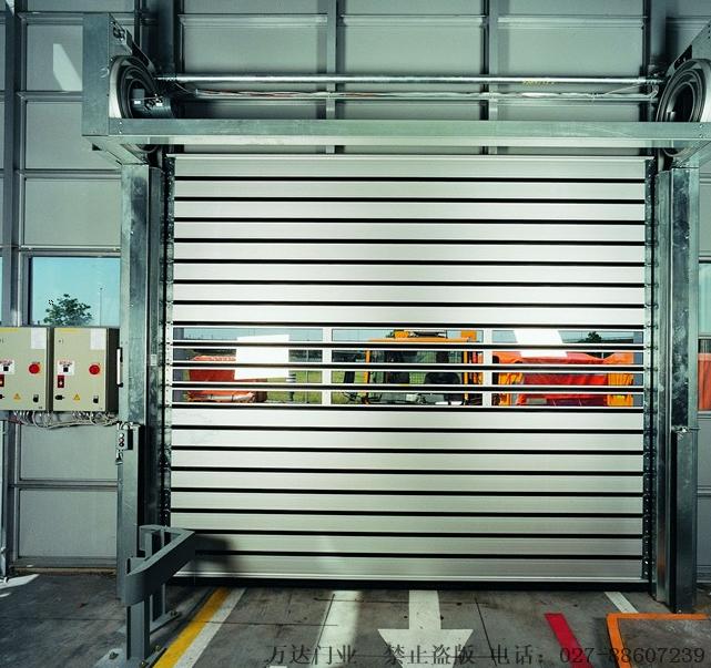 硬质文教镇快速门具有可靠性、实用性、耐久性、易操作性以及低 廉的维修费用和 低噪 音等性能。在工业应用中,每年正常无故障动作可达15万次以上。门板条为双层结构,可以抵抗强风和暴风雨及大雪的侵袭。根据需要,还可以将隔热铝制板条和透明的板条组合安装起来。板条在卷起时相互无接触,这样可以保持板条常年无变形、无磨损。另外板条之间也没有直接连接, 它们的两端是和可以卷绕的钢带螺接在一起,各板条之间用密封胶条连接,这样既可以节省空间,又可以保证门帘不变形,而且板条的更换也非常简单、快捷。